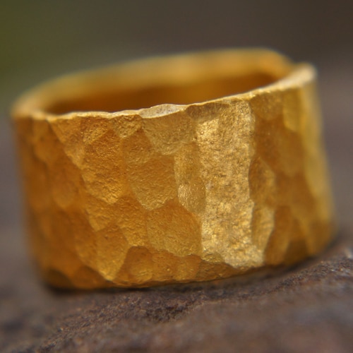 24k Wedding Band 24k Yellow Gold Artisan Hammered Etsy